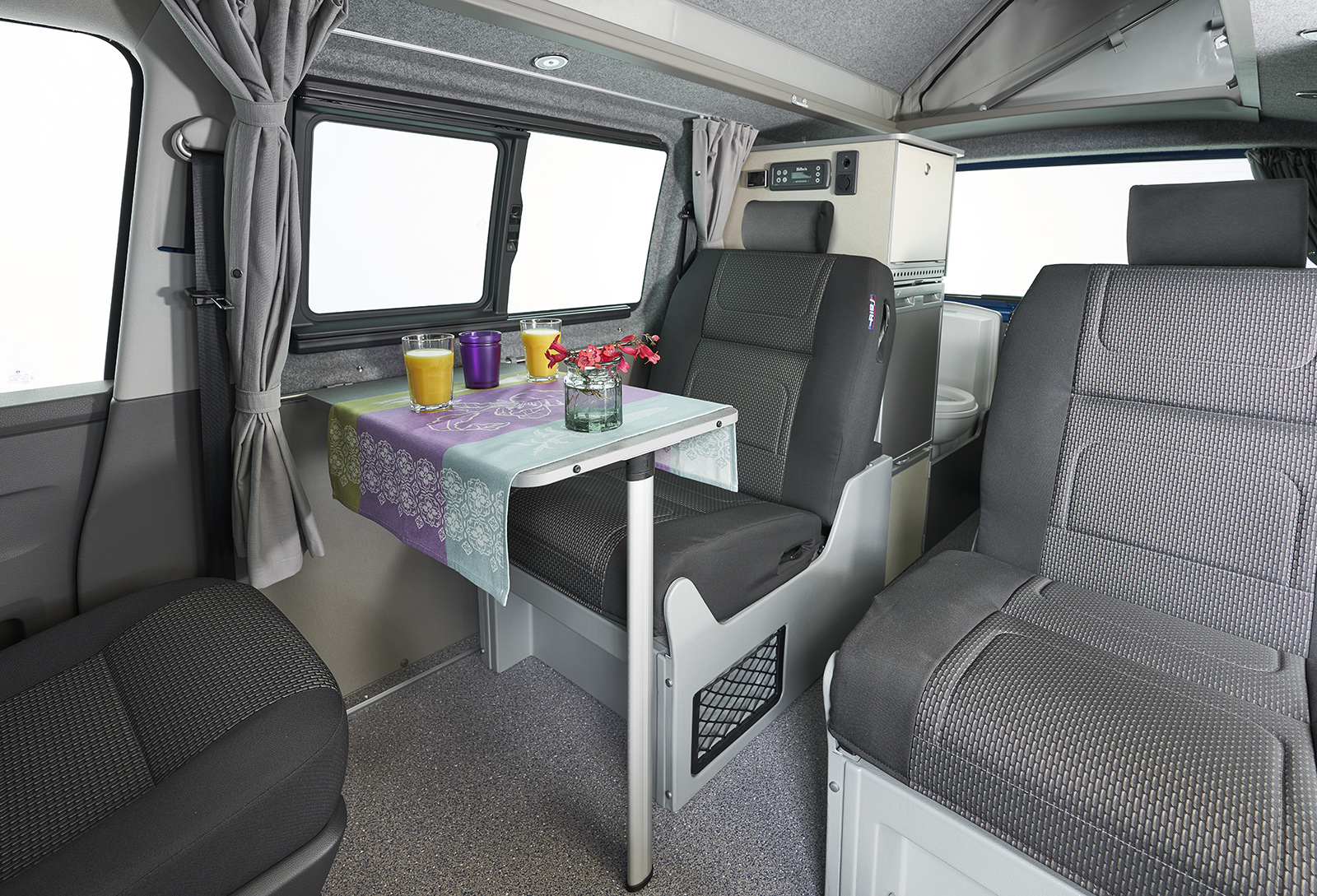 The Nexa+ is Bilbo’s development of the standard Nexa and includes a fitted plumbed in electric cassette toilet in the rear, together with a re-worked kitchen area. It comes with a Bilbo’s award-winning low-lie elevating roof, allowing the vehicle to pass under most height restrictions. The result being, a campervan that is designed for many uses. The Nexa+ is available on SWB or LWB chassis.