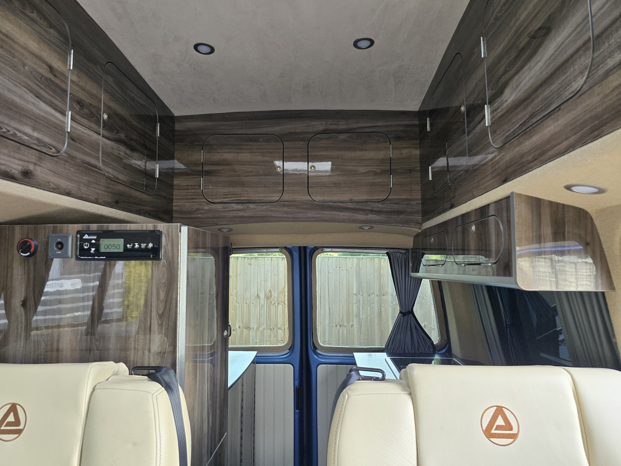 Features include air conditioning, metallic paint, cruise control, front & rear parking sensors, alloy wheels, privacy glass, barn doors, diesel heating, Fiamma F45 cassette awning, awning rail, roof vent, diesel heating, trip computer, Bluetooth, DAB 5” touchscreen CD/radio, Cat 1 Alarm, driver & passenger cab swivel seats with armrests, electric cab windows, electric adjustable heated folding mirrors, deadlock central locking, driver & passenger air bags, colour coded roof bumpers & mirror housings, opening rear window and finished in leatherette upholstery.